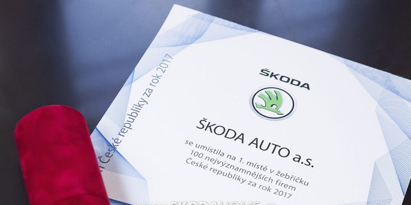 › ŠKODA AUTO získala též ocenění „Nejobdivovanější firma České republiky“
