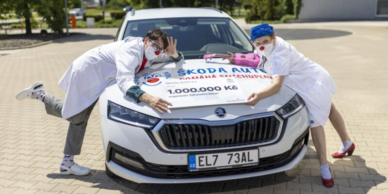 › ŠKODA AUTO předala příspěvek ve výši 1 milion korun organizaci Zdravotní klaun, která pomáhá nemocným dětem, osamoceným seniorům a pečujícím osobám