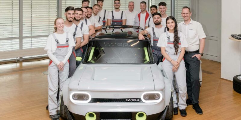 A právě tento model – konkrétně Prinz 4L vyrobený v roce 1971 – se Audi rozhodlo vzkřísit a modernizovat ke 150. výročí továrny. A aby to bylo ještě zajímavější, německá značka zadala úkol elektrifikovat stárnoucí klasiku týmu 12 stážistů, který odvedl úžasnou práci.